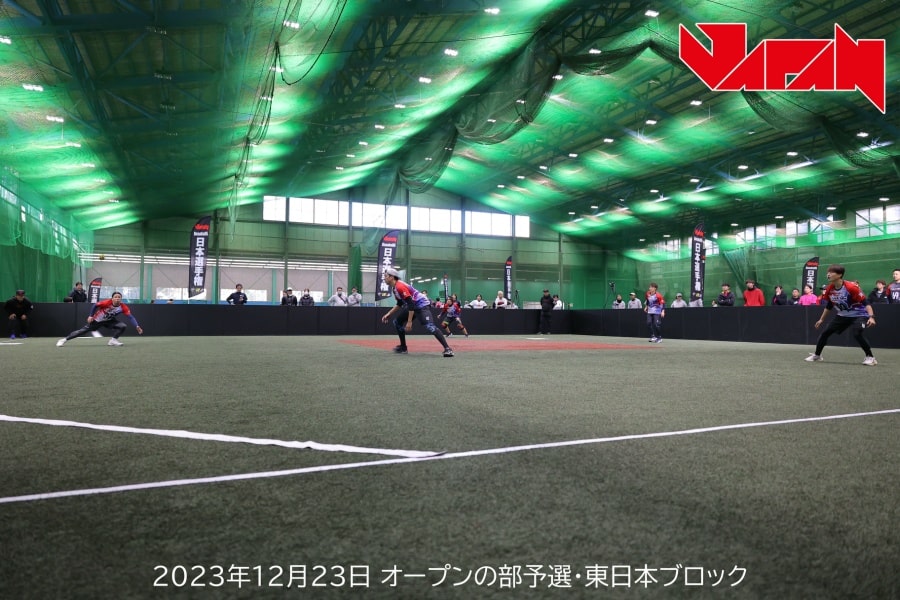 | 予選大会について | プレエントリー数に応じて東日本と西日本の2ブロックで予選を行う。 ■オープンの部・東日本ブロック 12月23日(土)明治神宮外苑室内球技場 1月21日(日)駒澤大学硬式野球部祖師谷グランド室内練習場 ■オープンの部・西日本ブロック 1月13日(土)名古屋金城ふ頭アリーナ/旧武田テバオーシャンアリーナ ■ユースの部・東日本ブロック 1月20日(土)駒澤大学硬式野球部祖師谷グランド室内練習場